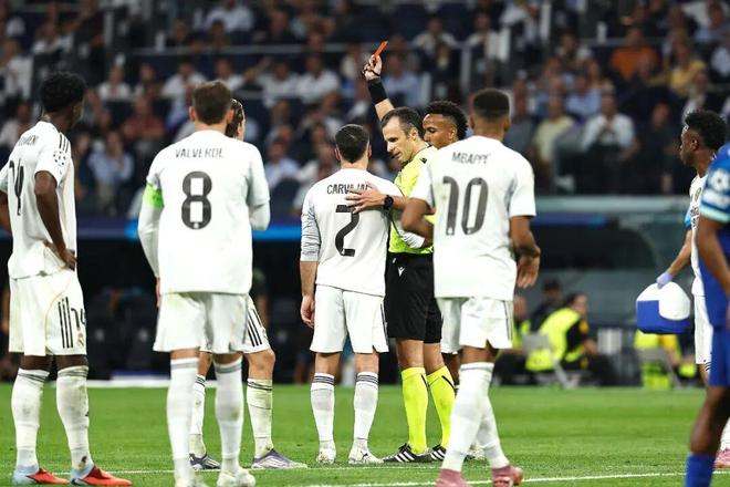 下半场双方互有攻防,但裁判的两次关键判罚影响了比赛走向。第72分钟,卡瓦哈尔与马赛门将鲁利发生争执,裁判观看VAR后,将前者直接红牌罚下场。第82分钟,马赛后卫在铲抢维尼修斯的过程中胳膊意外触球,十人应战的皇马再度获得点球机会,姆巴佩第二次将点球打进,帮助皇马锁定胜局。
