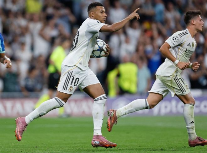 好在替补出场的维尼修斯再次为皇马赢得点球机会,姆巴佩点射梅开二度;打进个人欧冠57球,超越范尼追平穆勒;已经排在了欧冠总射手榜第6位。皇马拿下欧冠开门红,赛季5场比赛全部获胜。